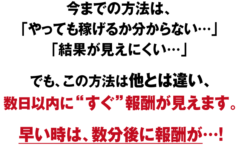 もっとシンプルな作業ですぐできて、早いとその日から報酬が得られる…。