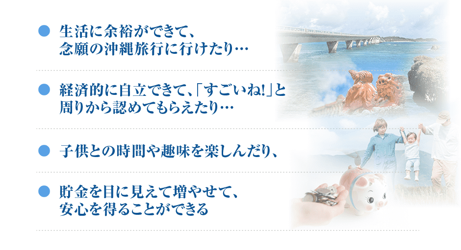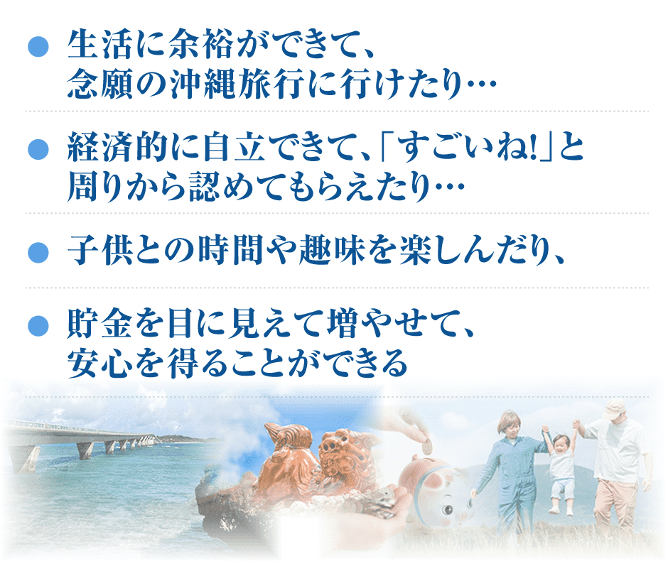 また、何も起きなかったとしても、保険のような形で安心して毎日を過ごせますので、お金の面でも心の面でもゆとりを持つことができます。