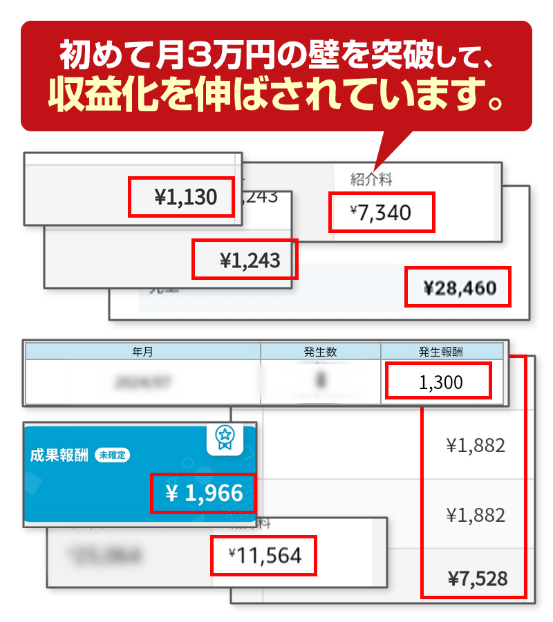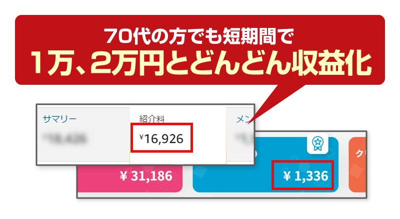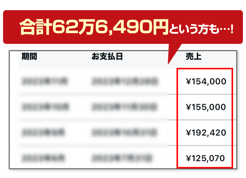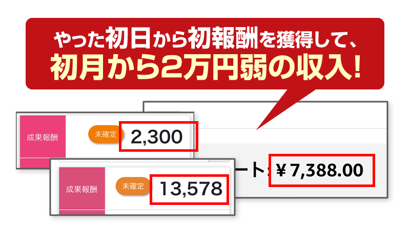 始めたその日から報酬が発生することもよくあるので、初心者の方でもゼロスタートで初月から2万、3万円…と稼ぐことが「できる」方法です。